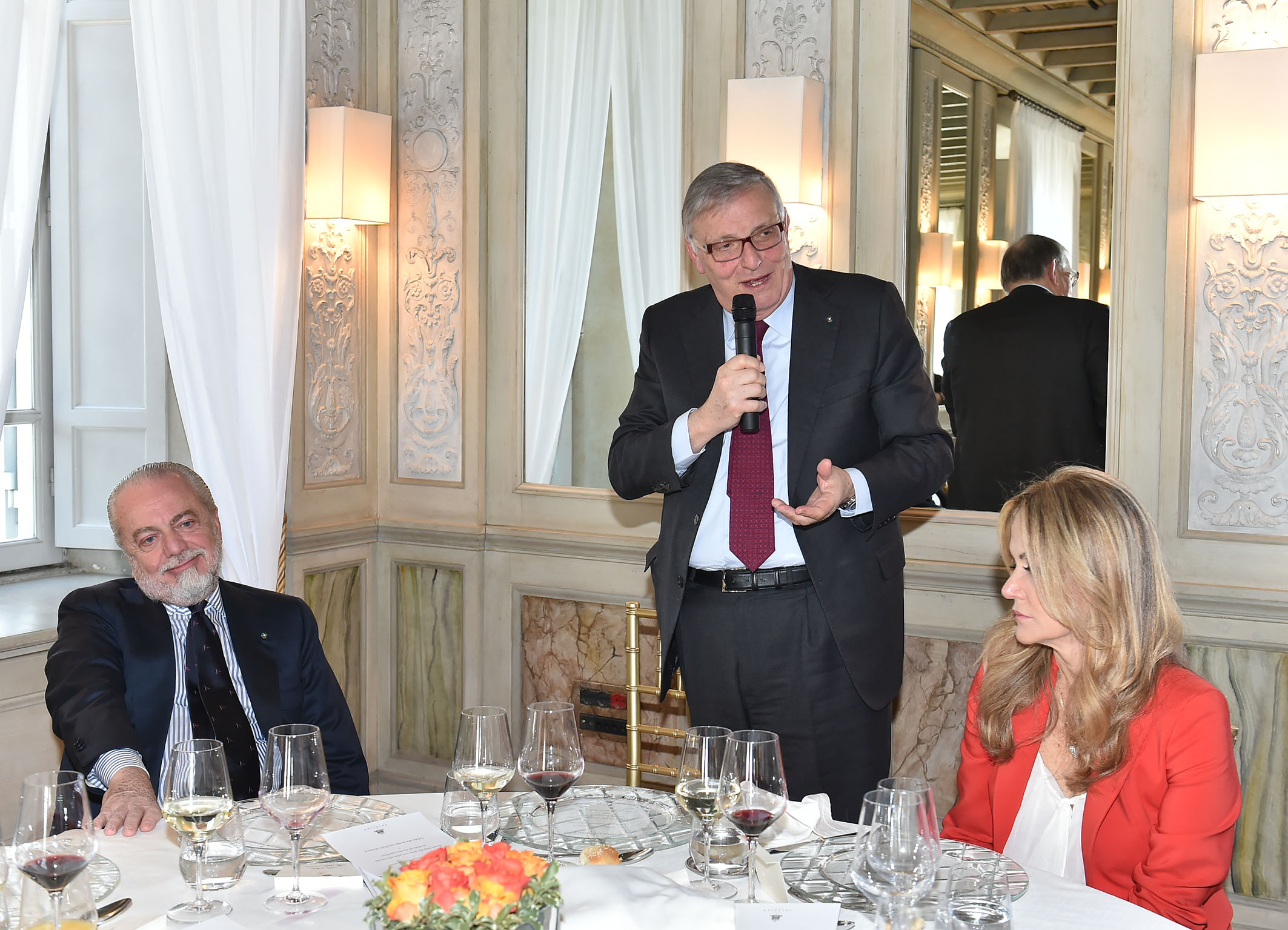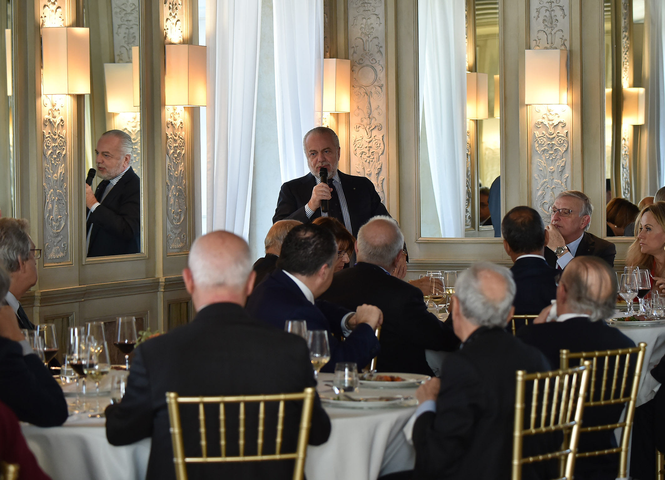 Proseguendo nel racconto della sua storia imprenditoriale, l’ospite ha ricordato che nel 2004, incontrò a Capri l’imprenditore e dirigente sportivo Luciano Gaucci, che fece scattare in lui l’interesse per il mondo del pallone. Un approccio che si concretizzò con l’acquisizione della squadra del Napoli calcio, una compagine in grave crisi economica, di classifica e di immagine.