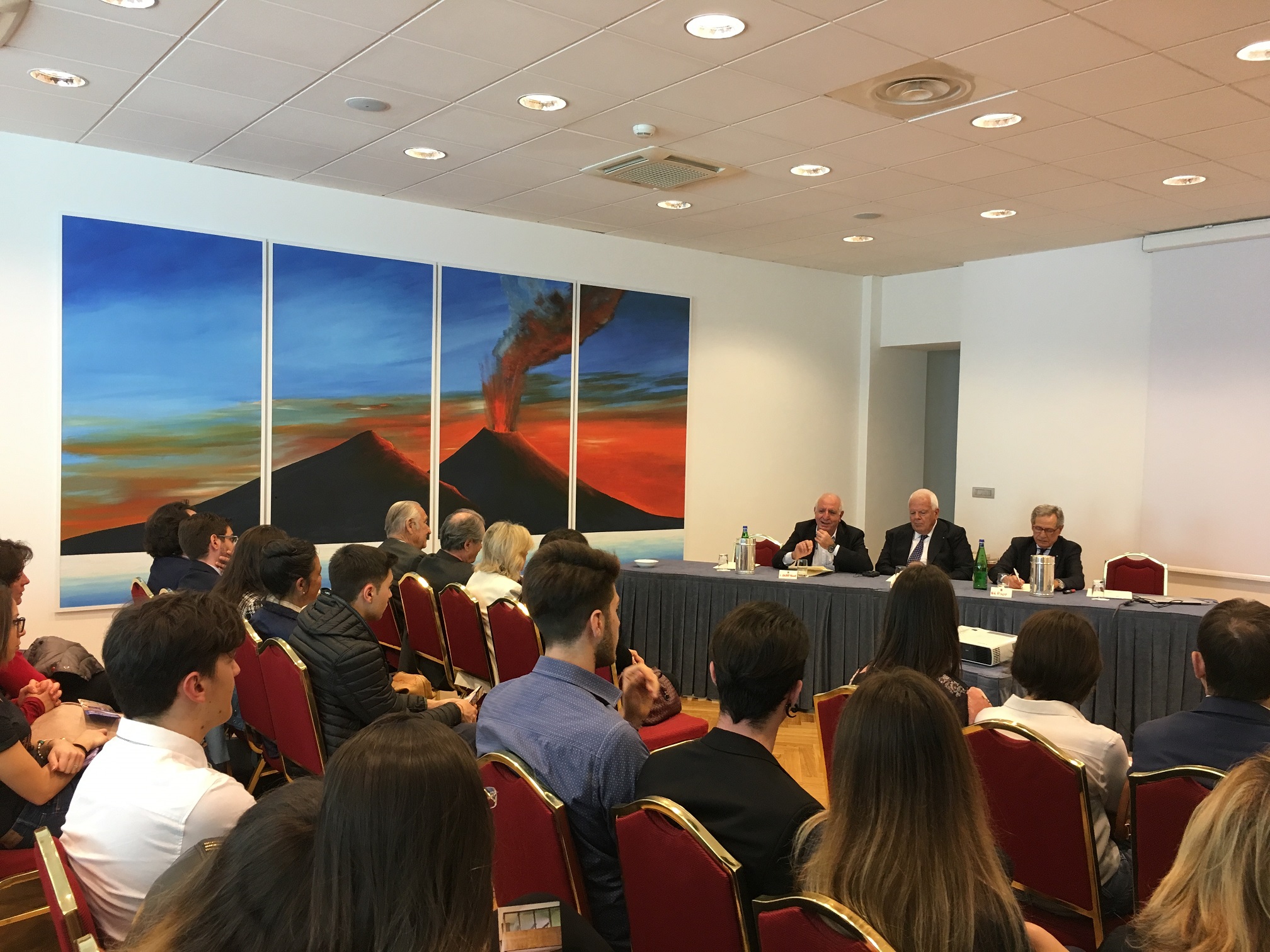 Presentazione a Napoli delle attività del Collegio Universitario dei Cavalieri del Lavoro “Lamaro Pozzani” agli studenti eccellenti della Campania, candidati al Premio Alfieri del Lavoro, Medaglia del Presidente della Repubblica. All’appuntamento, giovedì 6 aprile, al Grande Hotel Vesuvio, erano presenti, tra gli altri, il decano della Federazione Nazionale Alfredo Diana e i Cavalieri del lavoro del Gruppo Mezzogiorno Pina Amarelli, Massimo Moschini, Carmine Petrone e Immacolata Simioli.