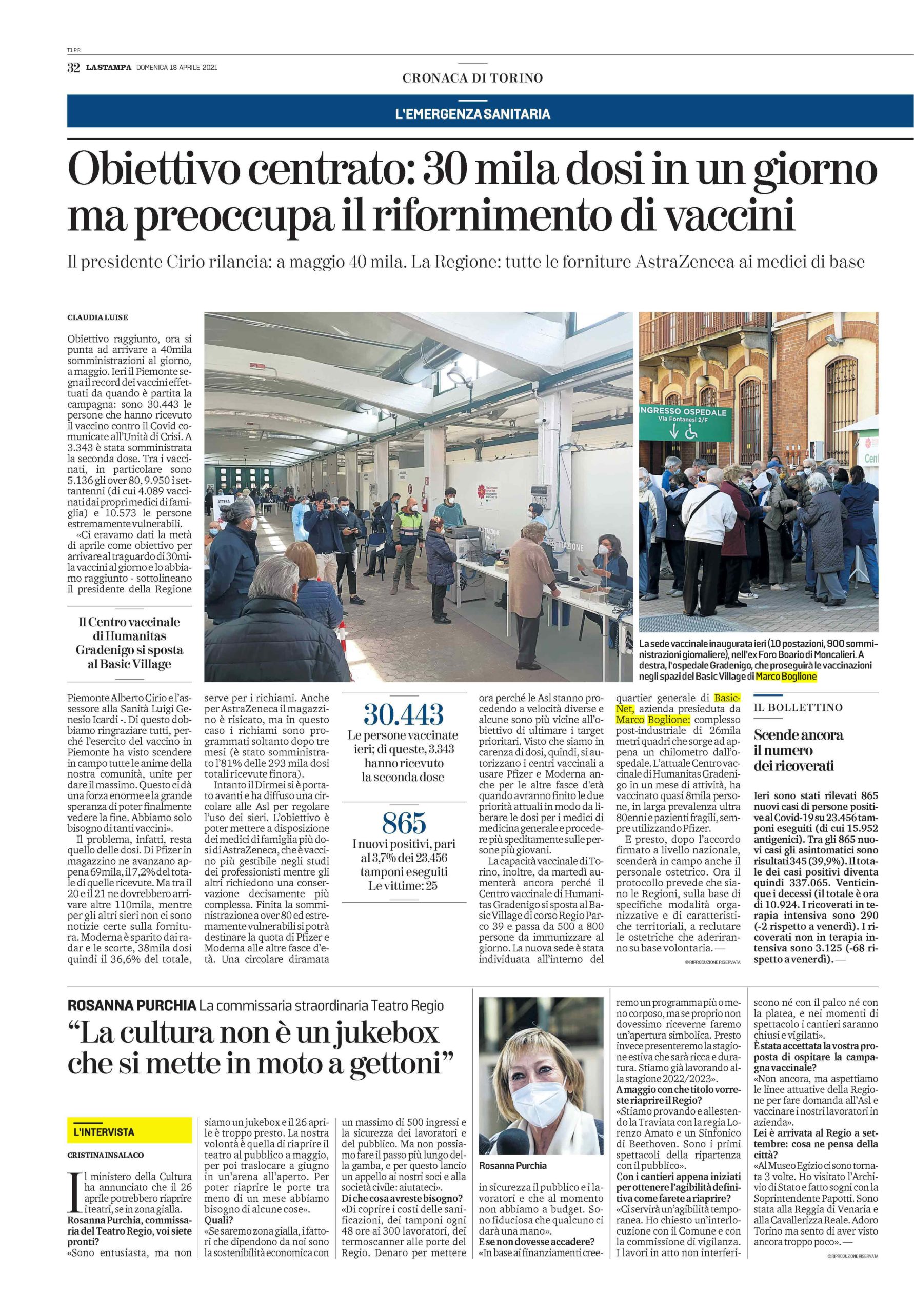 18 aprile 2021 – Obiettivo centrato: 30mila dosi in un giorno |