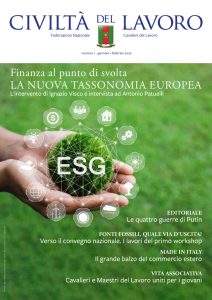 È online il nuovo numero di Civiltà del Lavoro. Argomenti: Finanza al punto di svolta, la nuova tassonomia europea; Fonti fossili, quale via d’uscita?; Le quattro guerre di Putin; Made in Italy, il grande balzo del commercio estero